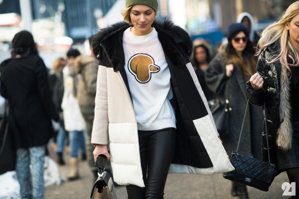 | Những chiếc áo khoác với thiết kế táo bạo và lạ mắt được trưng diện trên đường phố New York thu hút sự chú ý của các tay săn ảnh. Tại tuần lễ thời trang thu - đông lần này, các fashionista trên thế giới có thể thoả thích sáng tạo trang phục mùa đông cá tính và nổi bật hơn. |