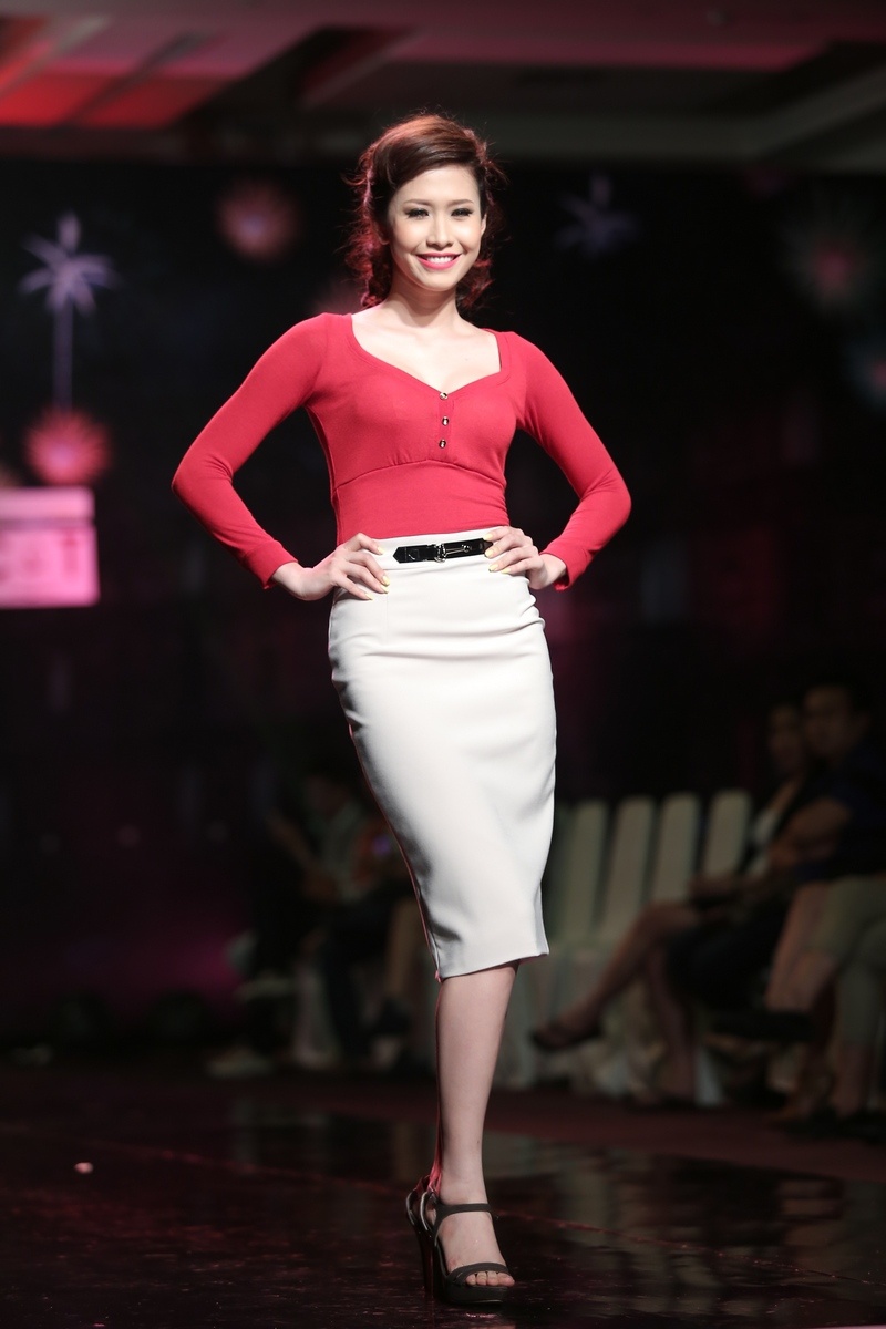 Diệu Huyền diễn trang phục công sở khá thông dụng.