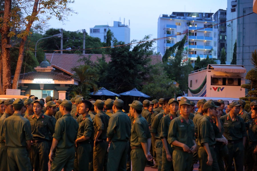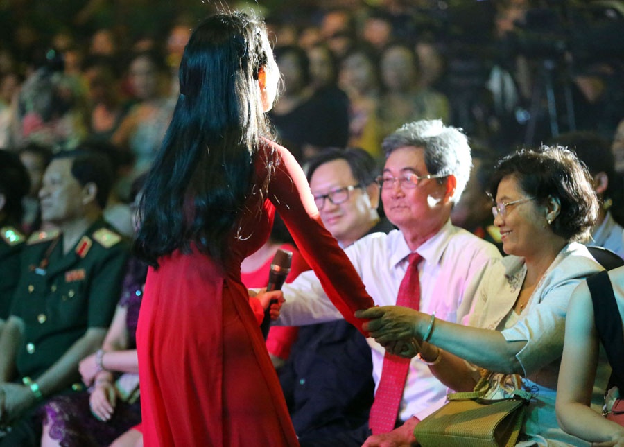 | Tối 2/5, ca sĩ Thanh Thúy thực hiện live show nhân sự kiện 40 năm giải phóng miền Nam thống nhất đất nước và 125 năm ngày sinh Chủ tịch Hồ Chí Minh tại Nhà thi đấu Nguyễn Du, TP HCM. Ngay từ chập tối, hàng ngàn chiến sĩ đã có mặt tại cổng nhà thi đấu để cổ vũ nữ nghệ sĩ. |