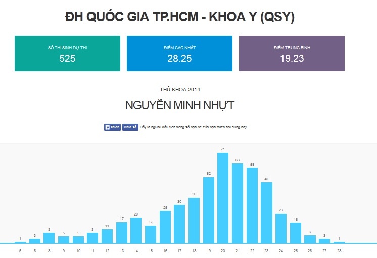 | Phổ điểm khoa Y - ĐH Quốc gia TP.HCM. |