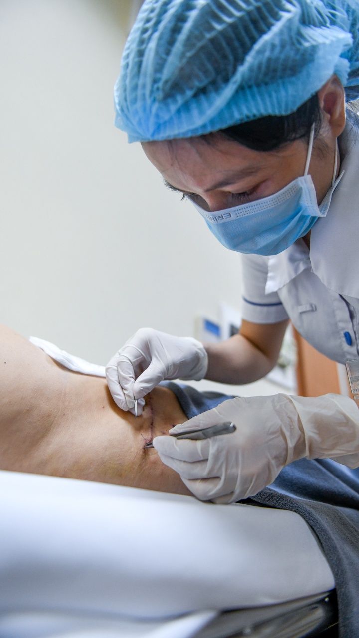 | 2 ngày một lần, H. quay lại bệnh viện để bác sĩ kiểm tra vết mổ, thay băng. |