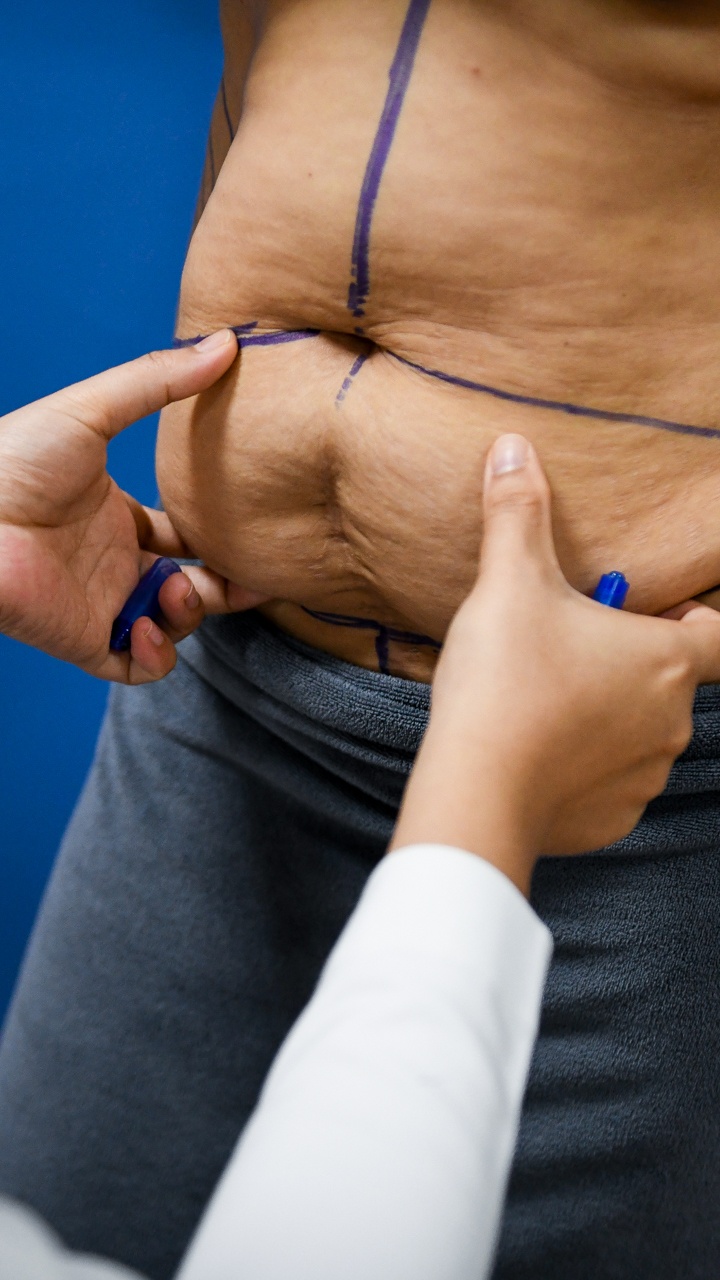 | Trải qua 4 lần sinh con, B.T.H. rất tự ti vì vòng 2 nhiều mỡ và chảy xệ. Hơn một năm trước, H. bị bỏng nặng phần chân, để lại di chứng. TS.BS Việt Dung tư vấn bệnh nhân tạo hình thành bụng, hút mỡ, lấy phần da cắt bỏ ghép vào chân. |