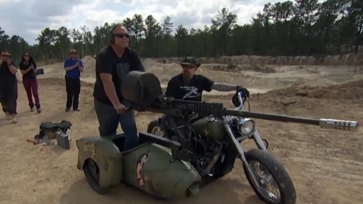 Có lẽ những hình ảnh này bạn đã thấy ở đâu đó trong những bộ phim hành động của Mỹ. Những người đàn ông trang bị đầy vũ khí, những thanh sắt, gậy bóng chày, dao, bình gas và những khẩu súng. Nhưng việc trang bị một khẩu súng máy 20 mm trên chiếc sidecar dường như rất hiếm gặp ngoài đời.