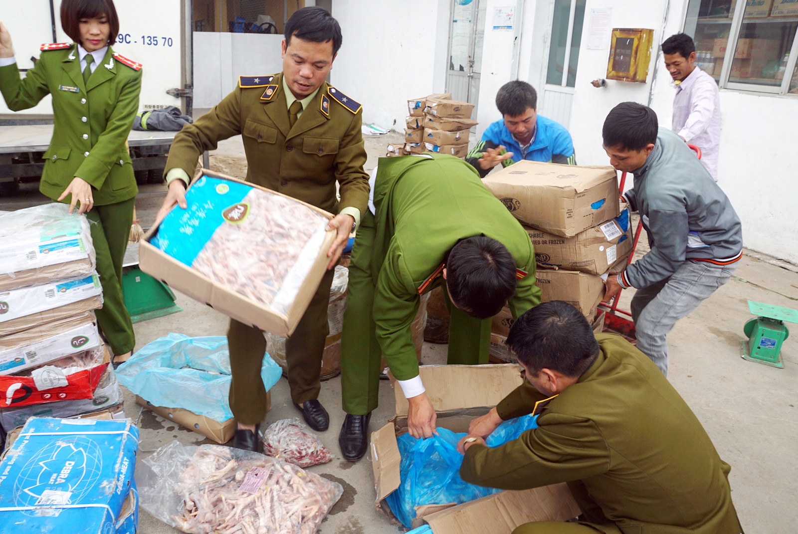 Chiều 14/12, Đội 5 Phòng Cảnh sát phòng chống tội phạm về môi trường (PC49, Công an Hà Nội) và Đội 6 Chi cục Quản lý thị trường, kiểm tra kho lạnh một công ty kinh doanh, chế biến thực phẩm ở phường Minh Khai, quận Bắc Từ Liêm. Quá trình kiểm tra, nhà chức trách phát hiện nhiều mặt hàng đông lạnh đã hết hạn sử dụng.