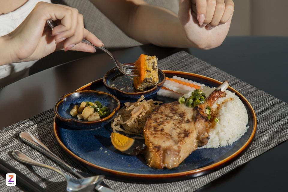 Món cơm sườn 550.000 đồng/phần tại một nhà hàng tại TP.HCM với phần cơm được sử dụng gạo ST25. Ảnh: Phương Lâm. |
