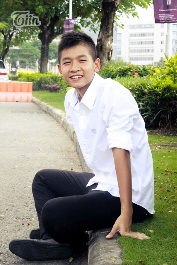 Nụ cười tít mắt đặc trưng của chàng hot boy 16 tuổi. Ngoài đời, Duy Quang là một cậu bạn hiền lành và hơi nhút nhát |