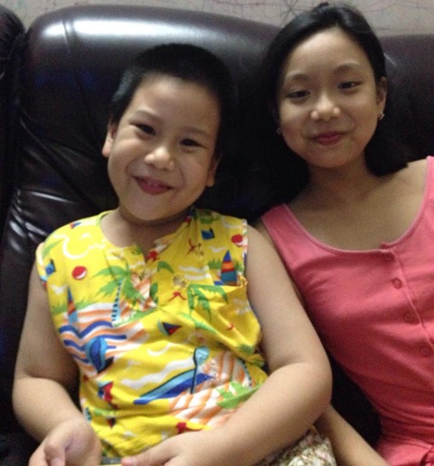 Hai con đáng yêu của Thu Hương. Con trai út của chị tỏ ra là người thích diễn xuất. |