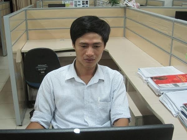 | Khắc Hiếu tại phòng làm việc của ĐH Duy Tân. Ảnh: VietNamNet. |