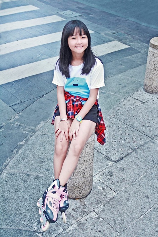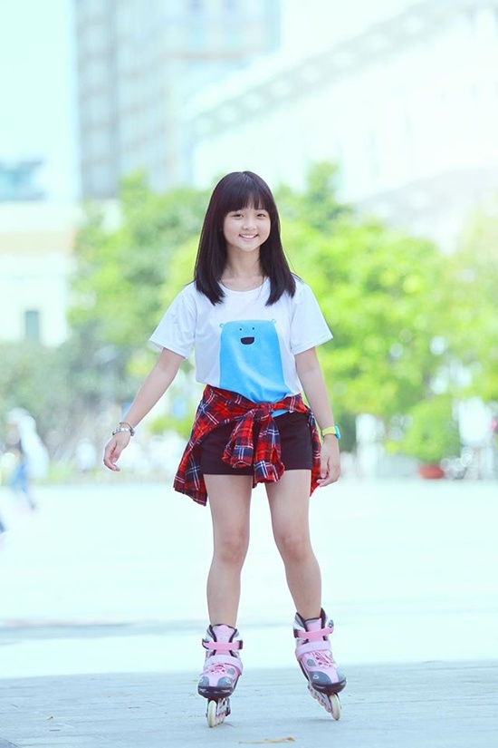 - Em vừa thi học kì xong và đã có điểm thi. Các môn lịch sử, địa lý, toán, tiếng Việt em được 10 điểm còn Tin học thì em chỉ được 9. Thời gian hiện tại thì em không đóng phim nào hết. Bình thường thì buổi sáng em dậy đi học đến 16h15 mới về. Thứ 2, 4, 6 em học thêm với cô chủ nhiệm. Thứ 3, 5, 7, CN em đi học tiếng Anh. Dù học tới 4 buổi 1 tuần nhưng em thích học tiếng Anh lắm nên không thấy áp lực. Buổi tối em hay ngủ trễ lắm vì em mê coi tivi (cười).