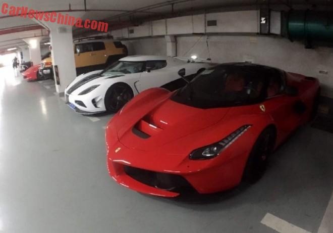 Giới siêu giàu ở Thượng Hải khá nổi tiếng với các bộ sưu tập siêu xe hàng khủng. Tại một garage ở đây, người ta có thể kể ra những cái tên đình đám như Ferrari LaFerrari. Siêu xe này có mức giá 22,5 triệu tệ, tương đương khoảng 3,67 triệu USD. |
