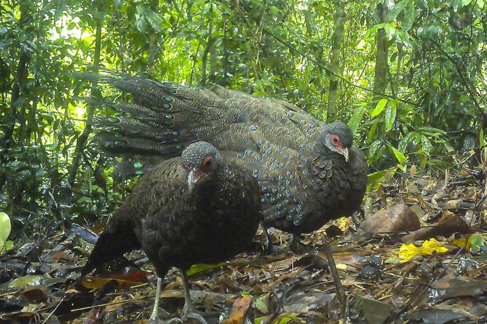 Gà tiền mặt đỏ quý hiếm ở Vườn quốc gia Chư Mom Ray (tỉnh Quảng Ngãi). Ảnh: VQG Chư Mom Ray. |