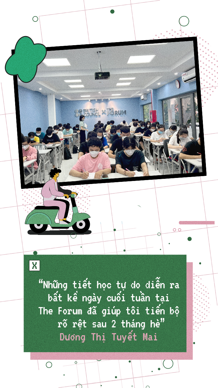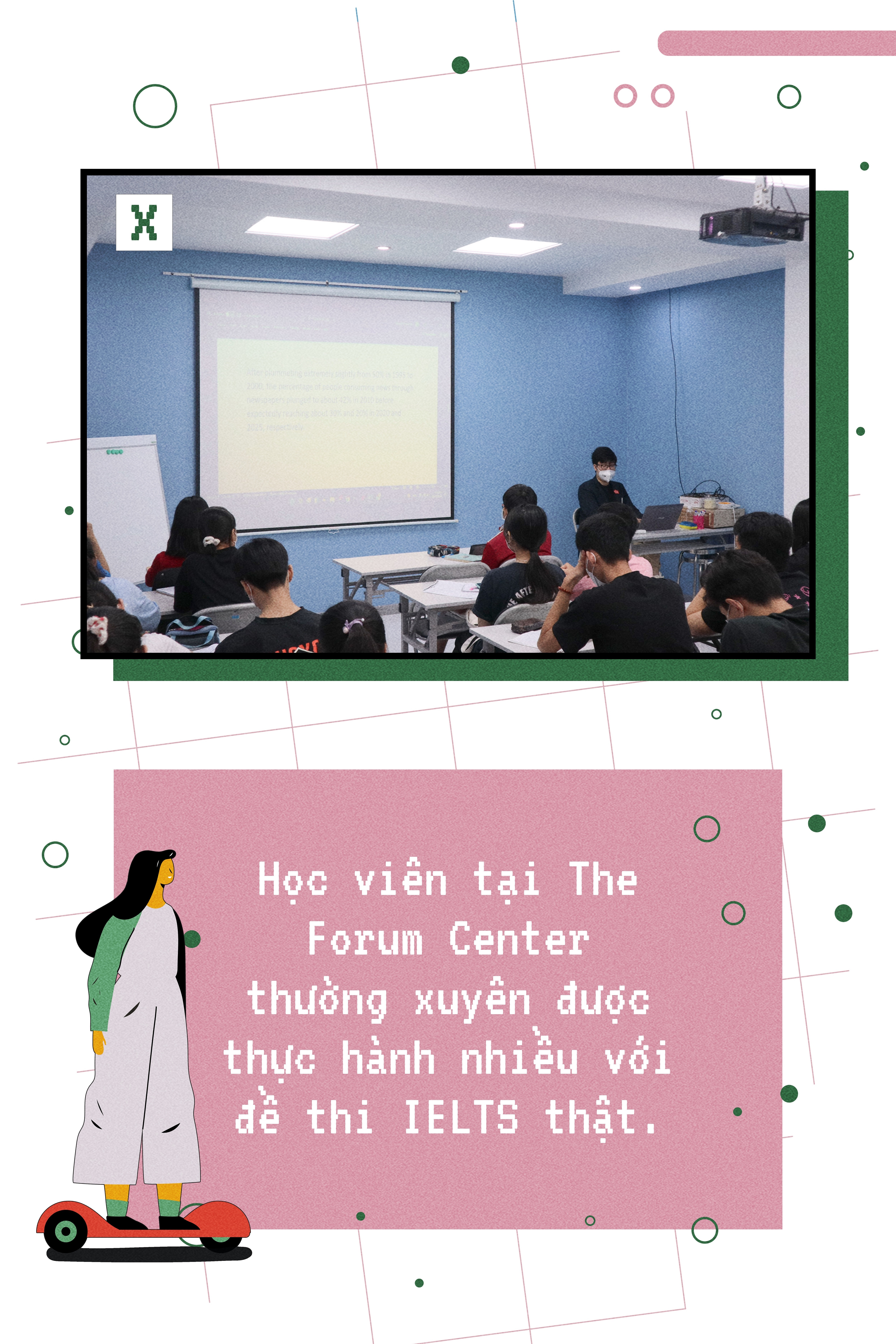 Ấn tượng từ các buổi học thử ở The Forum Center, Khuê cho biết bản thân đã quyết định chọn nơi này để gắn bó và luyện thi khi thấy các học viên được thực hành nhiều với đề thi thật, thay vì học lý thuyết suông. Sau khi làm đề, các thầy cô tại trung tâm cũng sửa bài và giải thích khá kỹ càng, đảm bảo kiến thức được truyền tải đầy đủ, sâu sát.