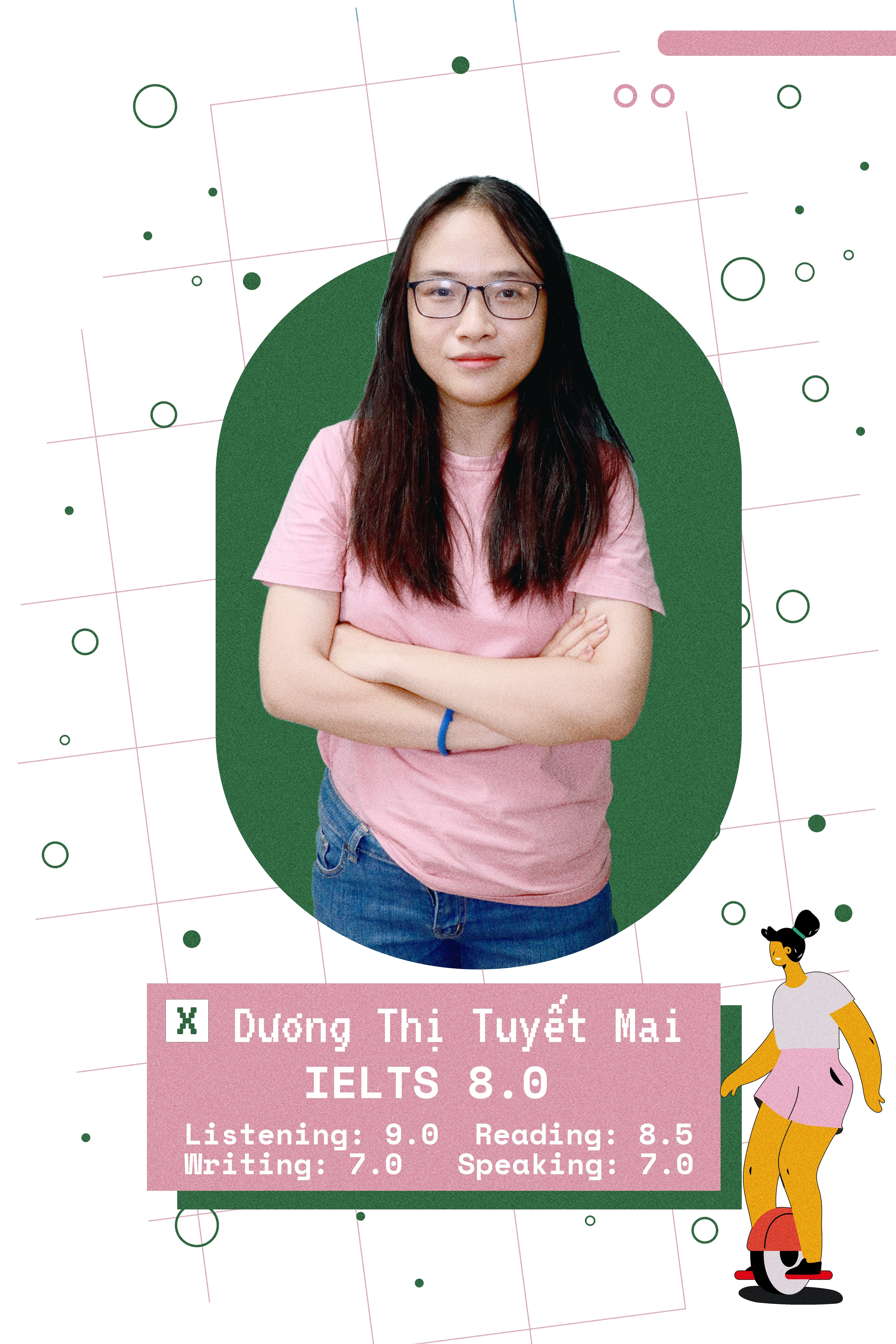 Có cơ hội tiếp xúc tiếng Anh từ nhỏ, nhưng Mai cho biết bản thân không có xuất phát điểm tốt khi bắt đầu luyện thi IELTS. Điểm thi đầu vào chỉ đạt 6.5, thời gian ôn luyện gấp gáp trong vỏn vẹn 6 tháng, cùng lịch học cuối cấp bận rộn và các hoạt động ngoại khóa trên trường, mục tiêu IELTS 8.0 đôi khi trở thành áp lực với cô gái trẻ.