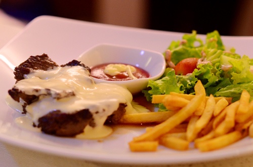 Thịt bò cao cấp được, tẩm ướp kỹ; sốt phô mai béo mềm, thơm lừng tạo nên món bò sốt phô mai ngon khó cưỡng. |