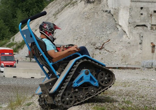 | Chiếc “ghế” kỳ lạ này mang tên Ziesel, do công ty Mattro có trụ sở tại Áo sản xuất. Trông chiếc xe như một cỗ máy di chuyển trong các bộ phim viễn tưởng, nhưng nó lại rất thực tế khi phục vụ những người khuyết tật di chuyển trên mọi địa hình. |