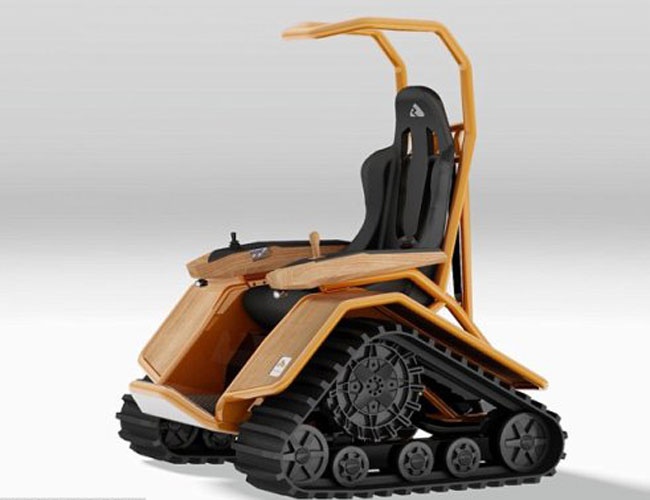 Về cơ bản chiếc ghế tự động này vận hành khá đơn giản, với 2 cần điều khiển, hai mô-tơ điện vận hành nhờ hệ thống pin gắn dưới ghế, và một bộ bánh xích cao su có thể giúp nó dễ dàng vượt qua những con đường phủ đầy tuyết hay những con mương, đầm lầy.