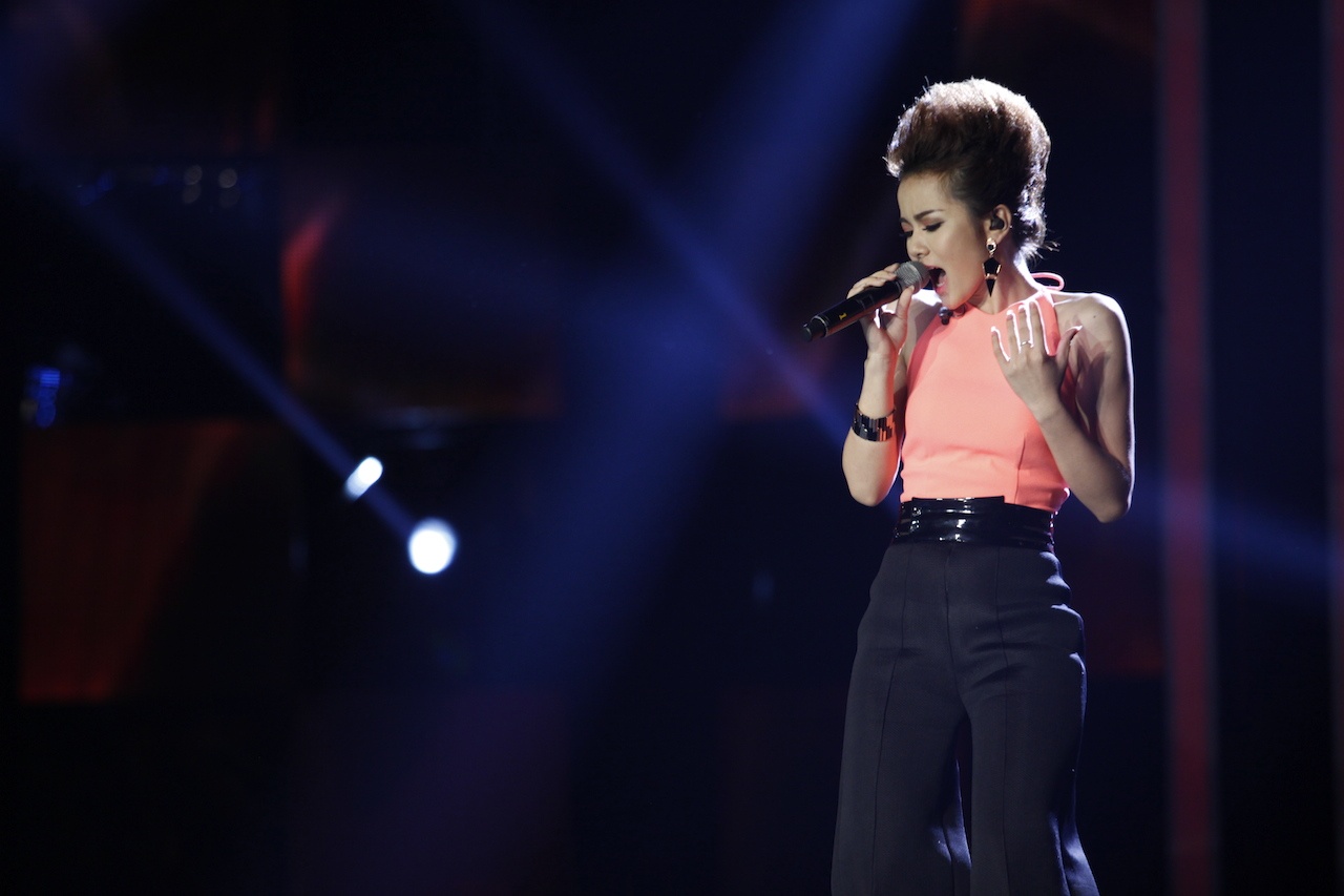 | Nữ ca sĩ không giấu được nỗi thất vọng sau khi xem xong phần thể hiện ca khúc Vì anh của Thanh Ly trong đêm liveshow thứ 5. Cô nói: “Lâu rồi chị không thấy Thanh Ly trong top 3 xuất sắc. Nằm ở top an toàn cũng không phải là hay. Về thanh nhạc, tất cả các nốt cao của em đều bị chênh và phô, nốt thấp thì bị mờ và không nghe được rõ lời. Đây không phải là một bài hát quá khó nhưng chị không cảm nhận được cái hay của ca khúc sau phần trình diễn của em". Thanh Ly lộ rõ nét lo lắng sau khi nghe lời nhận xét của huấn luyện viên. |