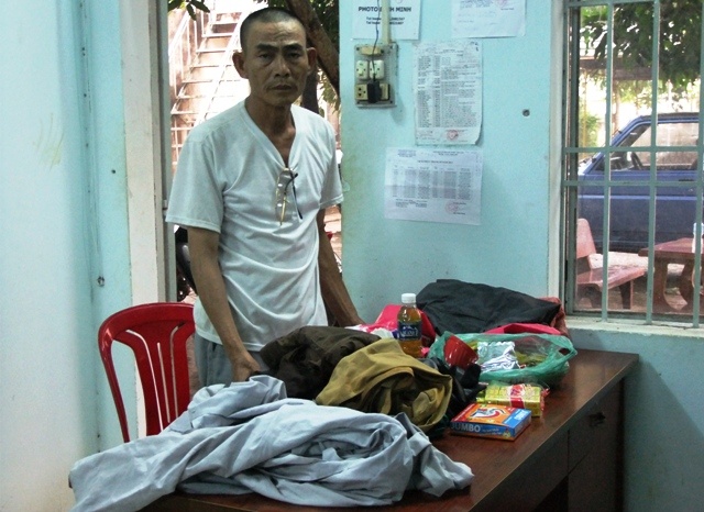| "Thầy tu" Hòa cùng bộ quần áo của nhà chùa. |
