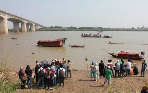| Cảnh tìm kiếm xác nạn nhân ở khu vực chân cầu Thanh Trì (Hà Nội). |