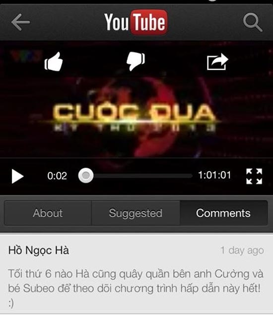 Qua tài khoản chính thức trên trang Youtube, Hồ Ngọc Hà vui vẻ chia sẻ dưới clip tập 8