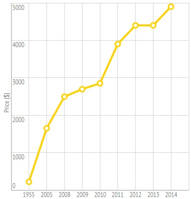 Hãy nhìn vào những con số, bạn không khỏi bất ngờ. Trong khi mẫu túi da cừu cổ điển này không có sự tăng đột biến vào năm 2012 và 2013 thì đến 2014, giá của nó tăng thêm $500, gấp đôi năm 2008.