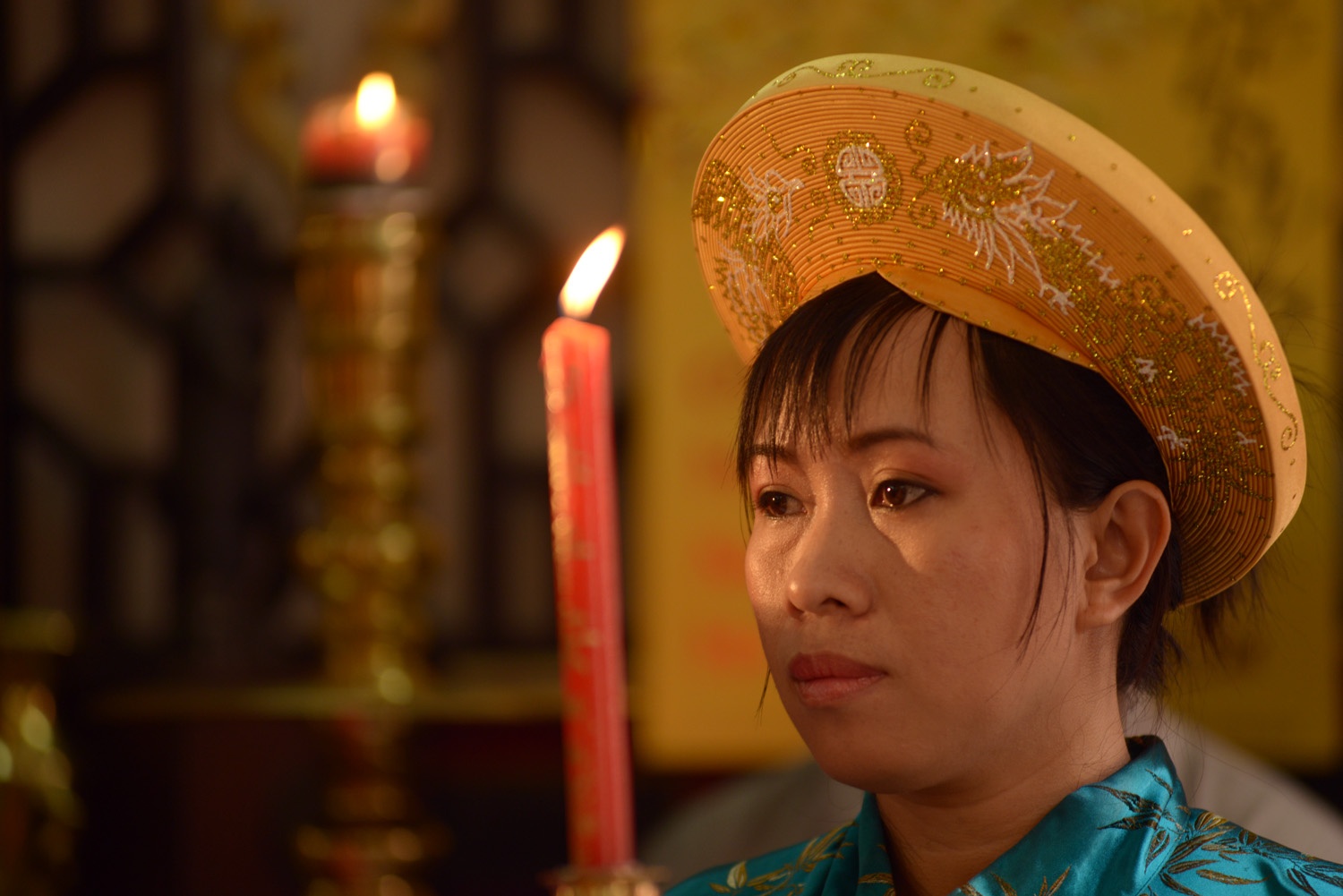 | Các nghi thức được tiến hành theo nếp cổ tuần tự diễn ra trong gần 1 giờ. Mọi người từ già trẻ, trai gái đều hết sức trang nghiêm. |
