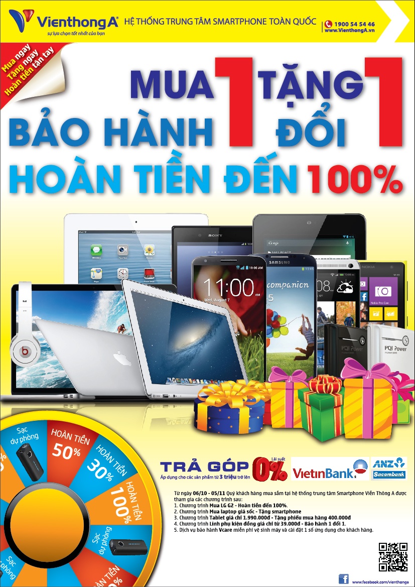 Khách hàng mua trả góp tại Viễn Thông A có thẻ tín dụng của ngân hàng Sacombank, Vietinbank sẽ được tham gia chương trình trả góp lãi suất 0%.