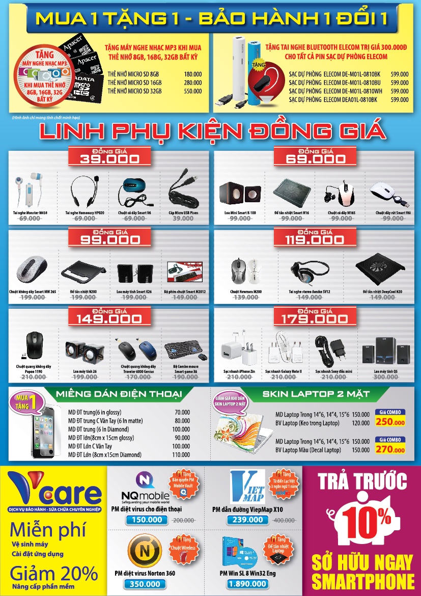 Link phụ kiện tại Viễn Thông A bao gồm các mặt hàng như: tai nghe, chuột, đế tản nhiệt, USB, thẻ nhớ, loa, sạc dự phòng… sẽ được áp dụng chính sách này: khi khách hàng mua thẻ nhớ 8GB, 16Gb, 32Gb bất kì sẽ được tặng kèm máy nghe nhạc MP3 sành điệu, mua sạc dự phòng Elecom tặng ngay tai nghe Bluetooth trị giá 300.000 đồng, linh phụ kiện đồng giá từ 39.000 đồng, 69.000 đồng, 99.000 đồng..