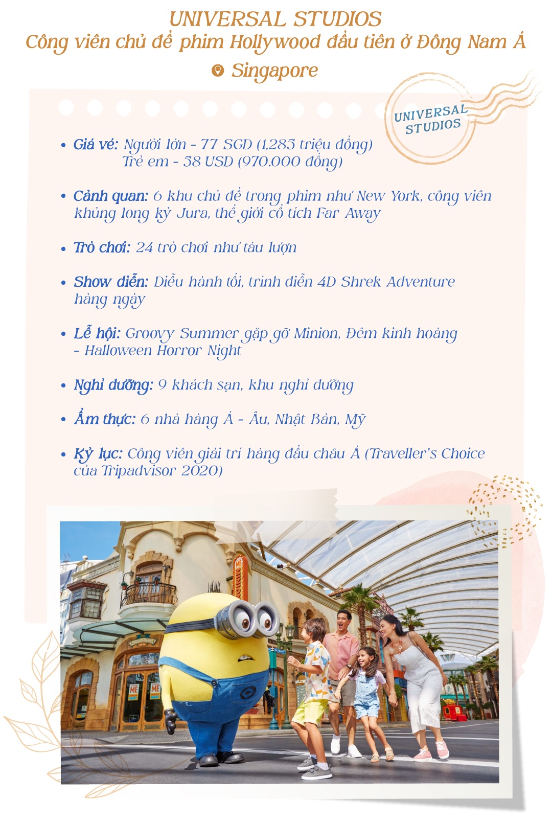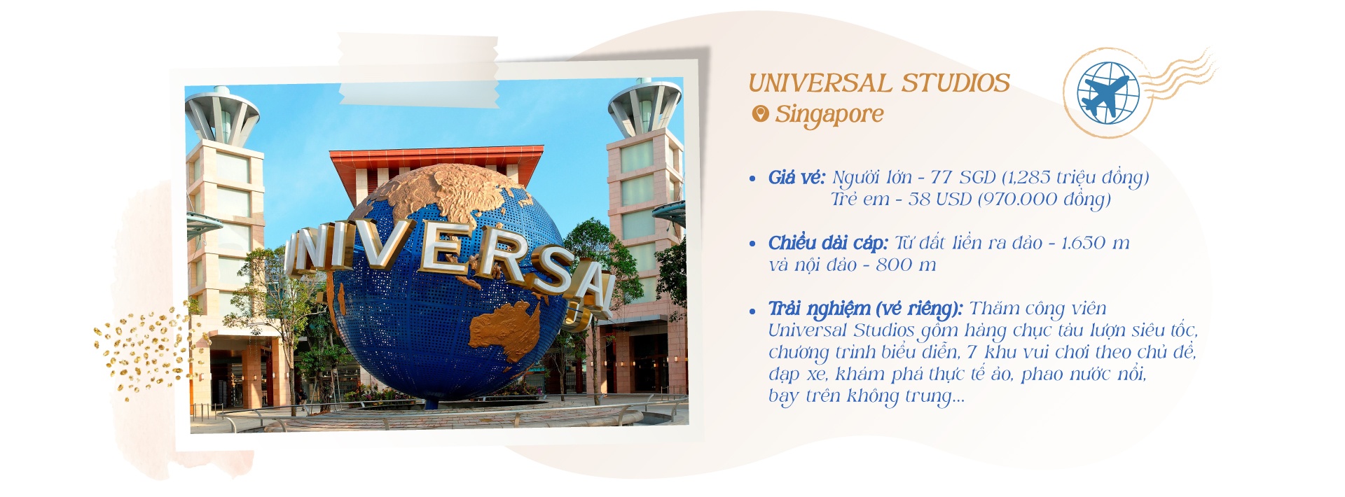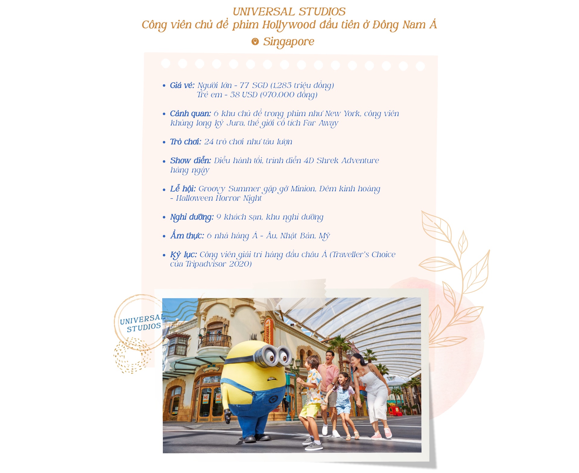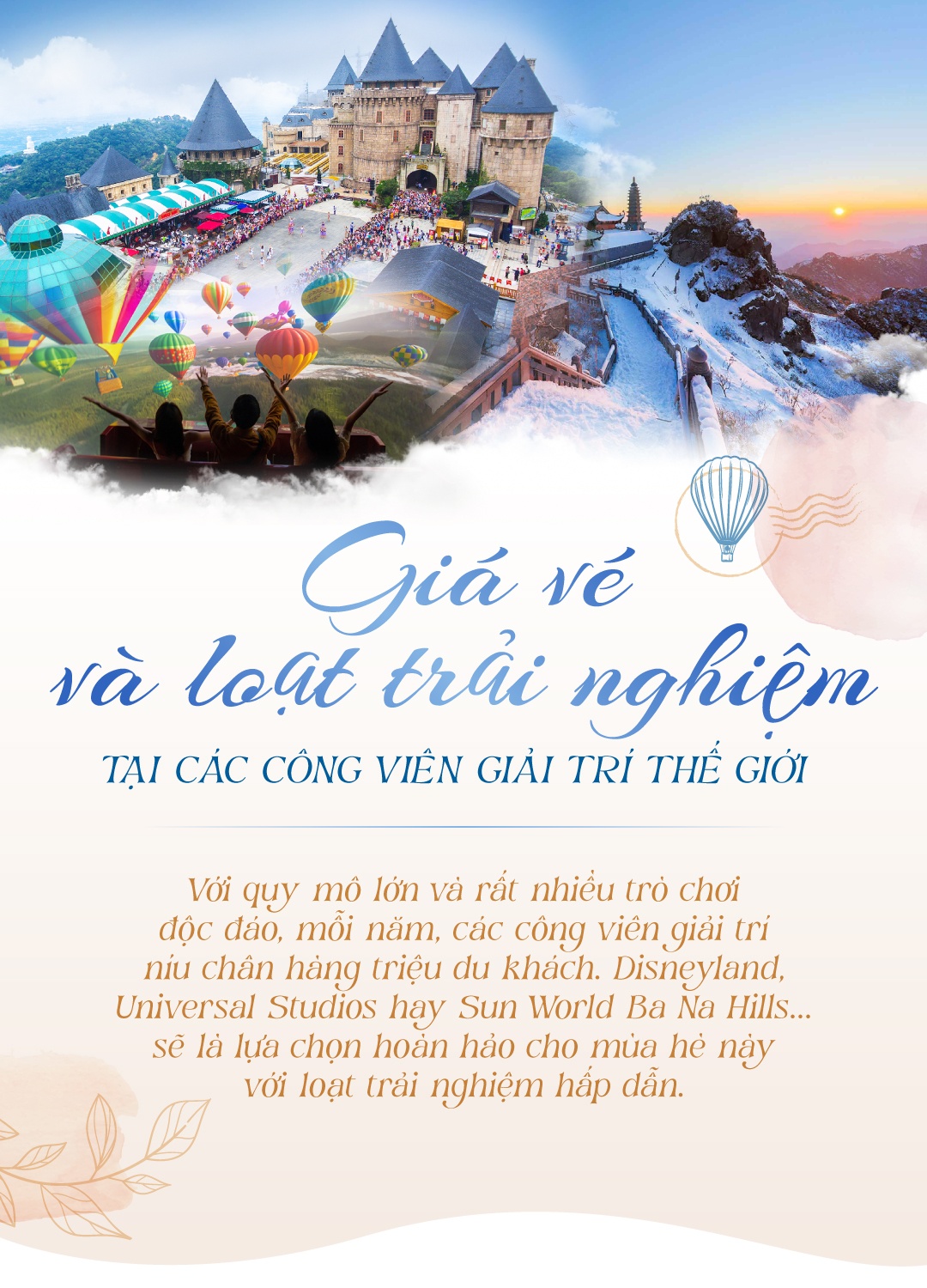 Công viên giải trí “all in one” là điểm đến hấp dẫn khi nhiều nước bắt đầu mở cửa du lịch. Dù bạn muốn thử sức với trò chơi cảm giác mạnh; ngắm khung cảnh hùng vĩ, nên thơ từ trên cao; hay thưởng thức nền ẩm thực phong phú ở vùng đất mới,… các công viên giải trí đều có thể đáp ứng.