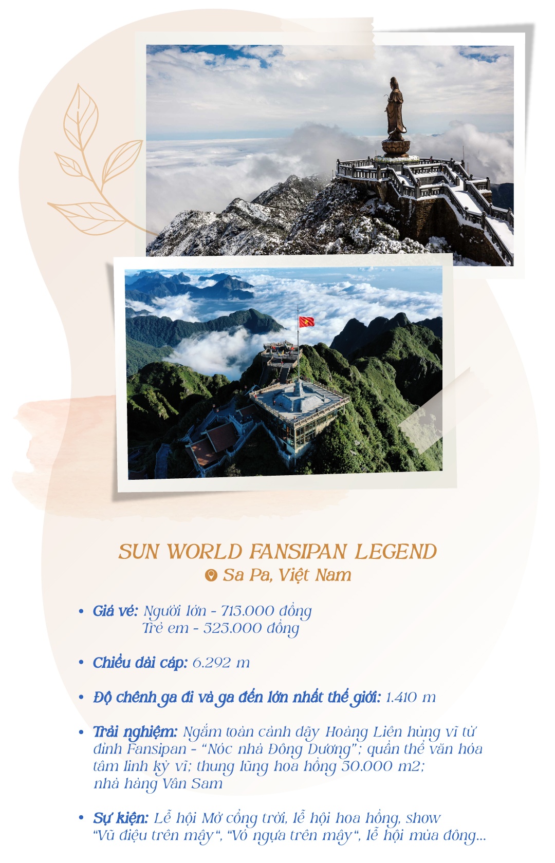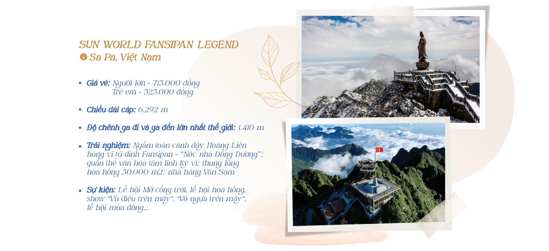 Tại Việt Nam, nhiều công trình cáp treo đạt kỷ lục thế giới không chỉ dẫn dắt du khách đến với miền tiên cảnh, mà còn dẫn lối đến một thế giới cổ tích với nhiều trò vui hấp dẫn.