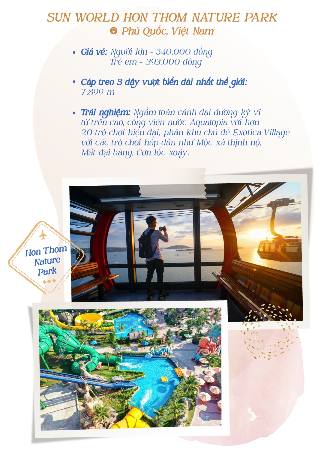 Trước đây, phần lớn người Việt biết đến công viên chủ đề qua phim ảnh, chương trình du lịch hoặc phải đến quốc gia khác trải nghiệm. Thế nhưng giờ đây, du khách Việt có thể khám phá mô hình này ngay trong nước với các công viên chủ đề do Sun Group kiến tạo. Có thể nói, các công viên chủ đề đẳng cấp như Sun World Ba Na Hills (Đà Nẵng) hay Sun World Fansipan Legend (Sapa) đã thực sự mang những trải nghiệm du lịch giải trí đỉnh cao của thế giới về Việt Nam, và đưa Việt Nam ra thế giới.