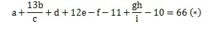 Ta có a1 + (13 x a2 : a3) + a4 + (12 x a5) – a6 - 11 + (a7 x a8 : a9) – 10 = 66
