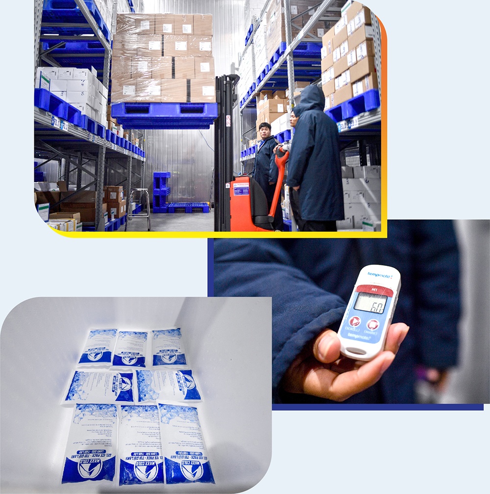 Hệ thống xe lạnh với thiết kế đặc biệt đảm bảo vaccine được bảo quản toàn vẹn từ khâu sản xuất, lưu trữ, vận chuyển đến khi đưa vào sử dụng trong điều kiện nhiệt độ lý tưởng. Song song, đơn vị có hệ thống thùng bảo quản chuyên dụng để vận chuyển vaccine tại mỗi trung tâm tiêm chủng (từ kho trung tâm đến tủ lạnh bảo quản chuyên dụng ở phòng tiêm).