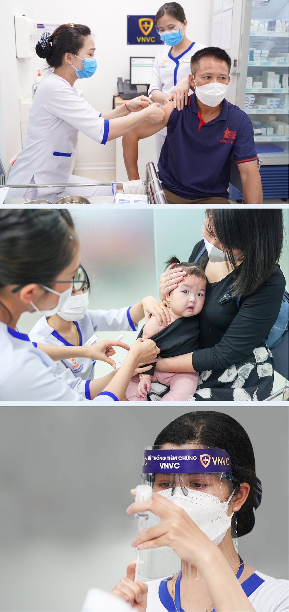 Cùng với cam kết cung ứng đầy đủ vaccine cho trẻ em và người lớn ở mọi miền Tổ quốc, VNVC có đội ngũ bác sĩ, nhân viên y tế tận tâm chuyên nghiệp, mang đến cho người dân dịch vụ tiêm chủng chất lượng, giá thành hợp lý.