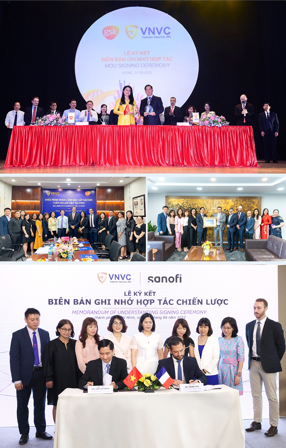 Đó là lý do sau đại dịch, đơn vị tổng lực tiếp cận các nguồn vaccine, hợp tác nhiều tập đoàn dược phẩm lớn toàn cầu. Hiện VNVC là đối tác chiến lược toàn diện của nhiều hãng vaccine và dược phẩm nổi tiếng thế giới như Glaxosmithkline - GSK (Bỉ), Sanofi Pasteur (Pháp), Pfizer (Mỹ), Merck Sharp and Dohme (Mỹ)... Điều này đồng nghĩa đơn vị có quyền đàm phán trực tiếp, nhập khẩu chính hãng toàn bộ vaccine quan trọng, cam kết cung ứng bền vững và được ưu tiên đặt mua số lượng lớn vaccine trước nhiều năm.