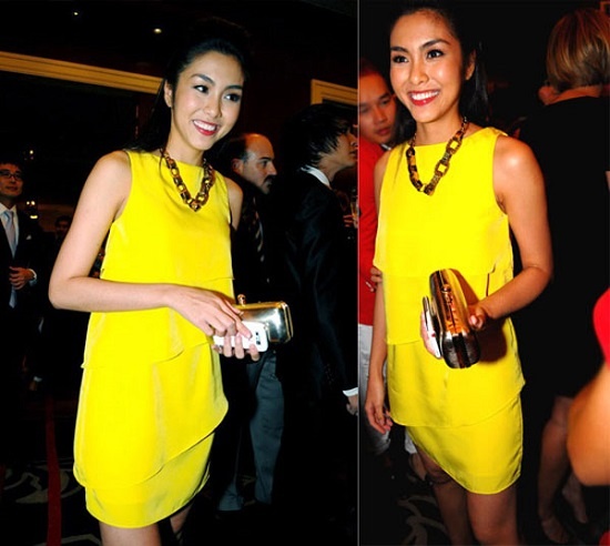 | Để làm giảm bớt tính đơn điệu khi diện váy suông, Hà Tăng đã tinh tế kết hợp với phụ kiện như bông tai, vòng cổ, clutch để tạo nên sự hoàn hảo nhất về phong cách. Tuy nhiên, với những chiếc váy suông màu nổi thì bạn gái nên tối giản hóa phụ kiện để tránh gây “nhức mắt” người đối diện. |