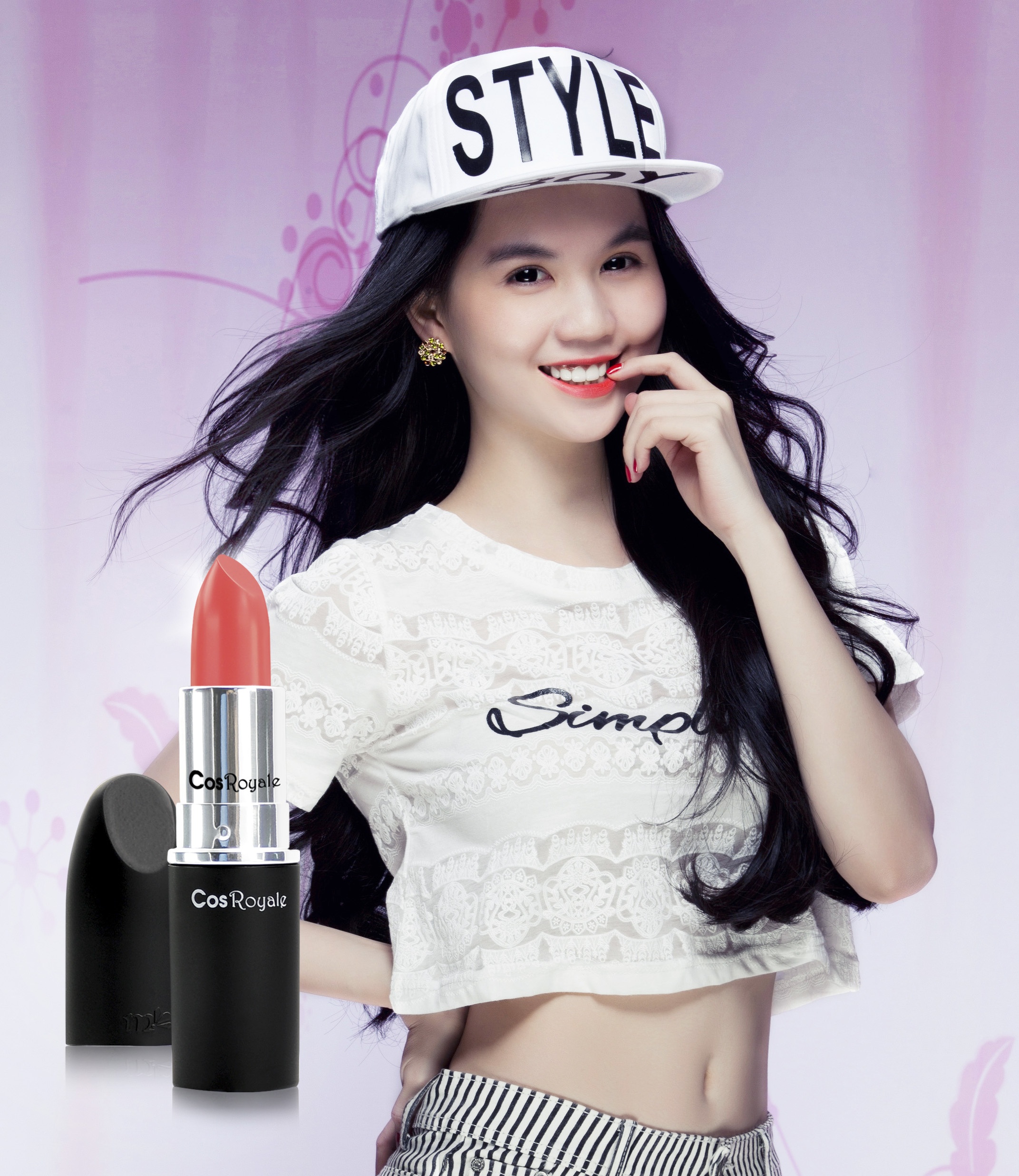 Son môi là “vật sở hữu vô giá” trong ví cầm tay của Ngọc Trinh. Để gương mặt baby, làn da trắng sáng trở nên nổi bật, cô luôn chuộng màu son đỏ, cam hoặc hồng sen thương hiệu Cos Royale. Mười hai sắc son thời trang từ đỏ cổ điển, đỏ neon đến đỏ tươi, cam hồng ánh san hô, hồng tươi, hồng đào đến cam sơri giúp Ngọc Trinh thỏa sức làm mới mình. Màu son trung thực, lâu phai kết hợp dưỡng chất mềm môi đem đến cảm giác tự nhiên của làn môi mượt mà, căng mọng mà không cần đến son bóng.