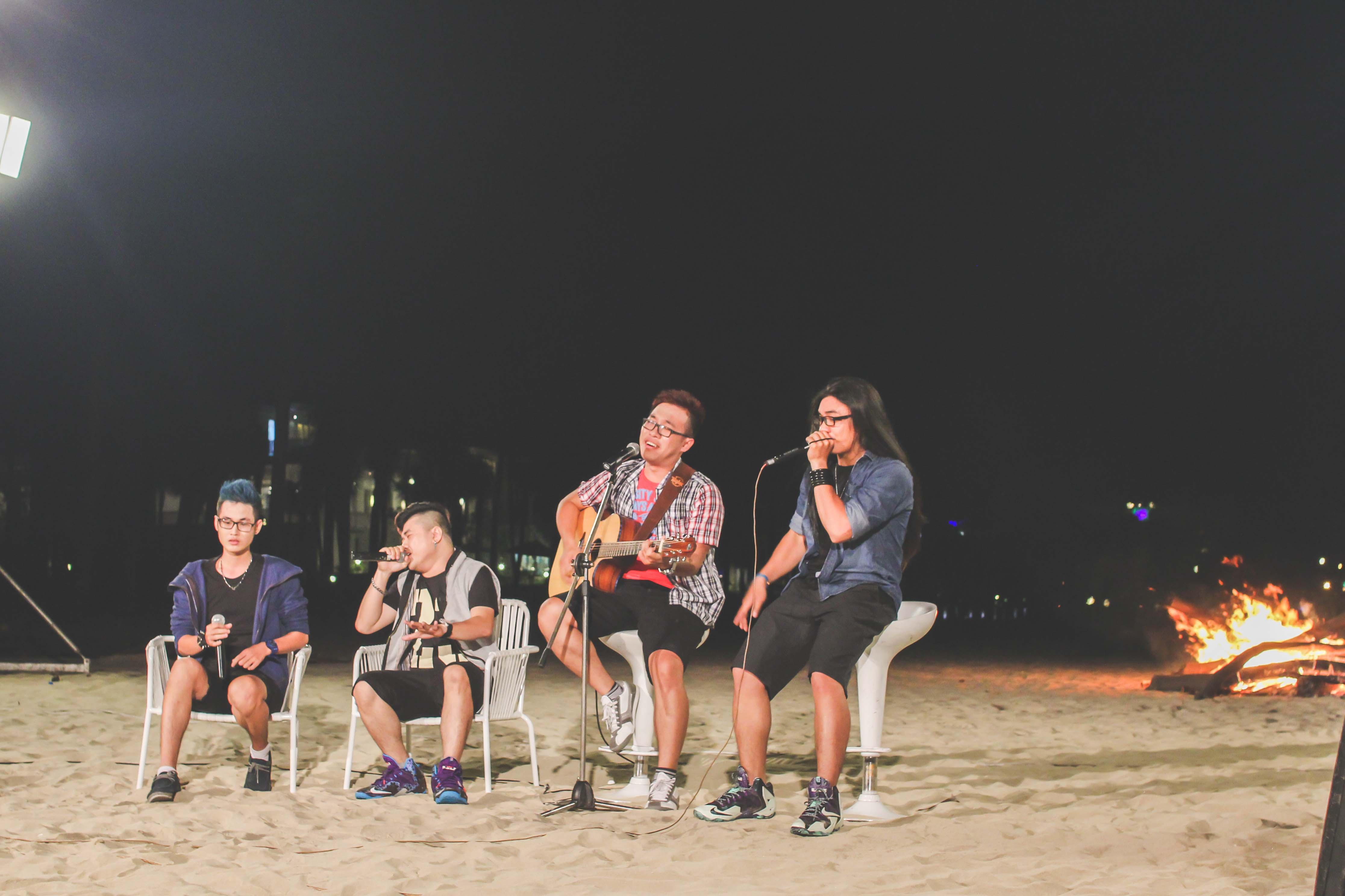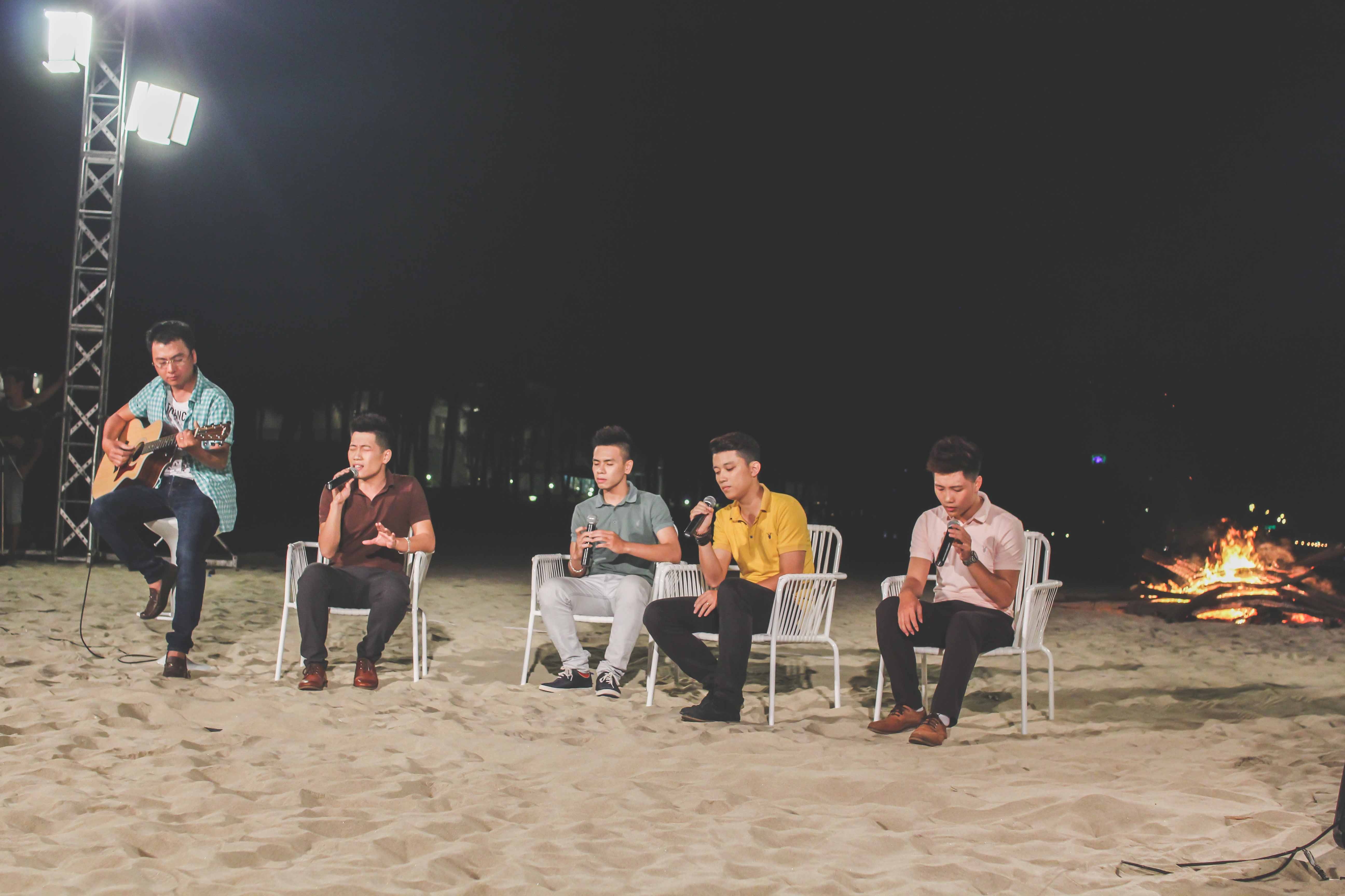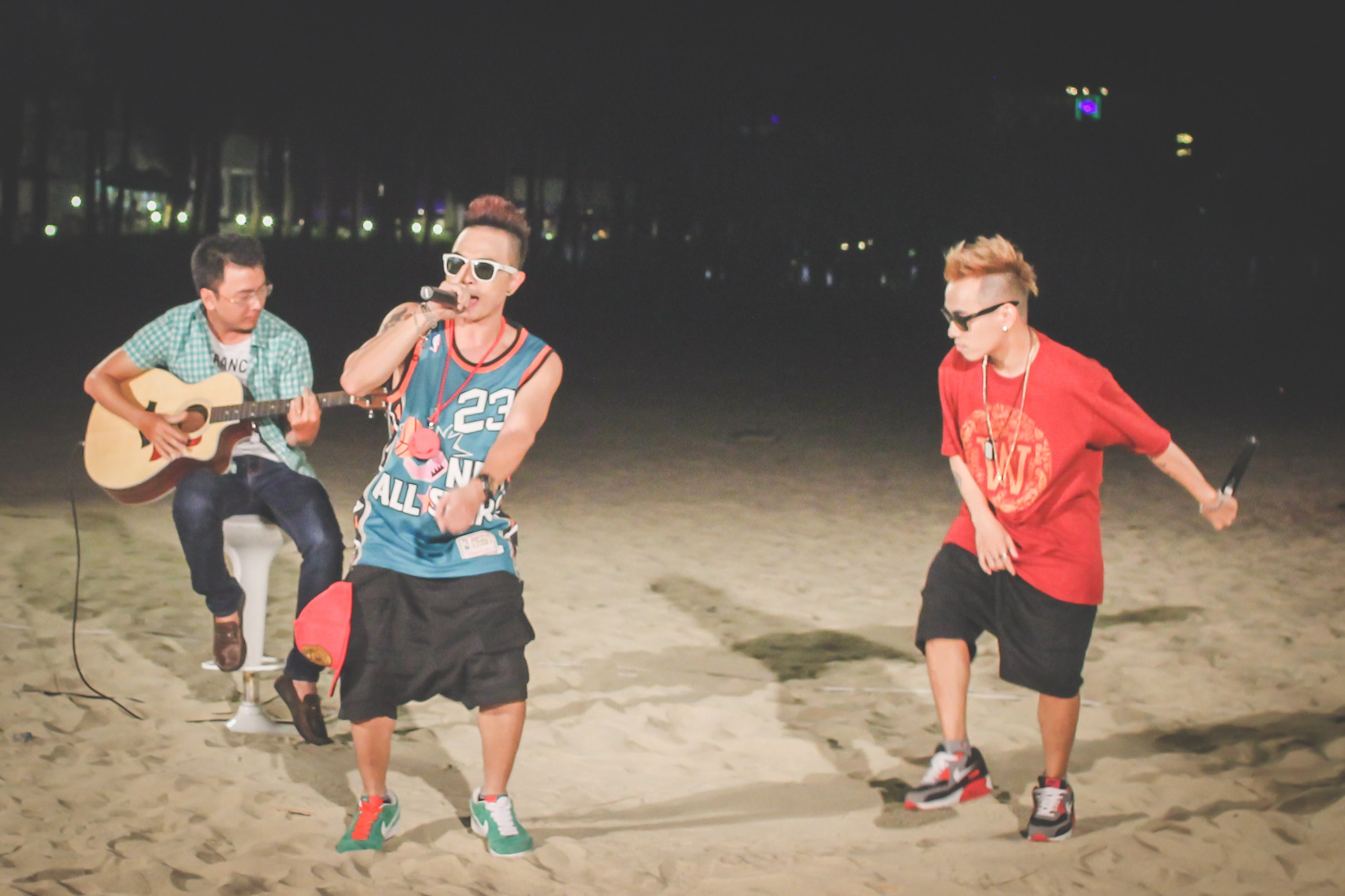 | Hai thành viên nhóm FB Boiz khuấy động không khí bằng một ca khúc do Phúc Bồ sáng tác - Đà Nẵng nàng tiên. |