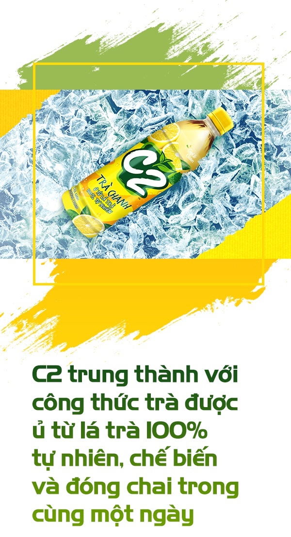 Nhắc đến thức uống này, một trong những cái tên được hầu hết thế hệ 8X, 9X yêu thích là trà xanh C2. Từ những ngày đầu, trà C2 đã được nhớ đến với phiên bản màu vàng - hương chanh và màu đỏ - hương táo. Sau nhiều năm nghiên cứu khẩu vị người Việt, C2 liên tục giới thiệu hương vị mới, thơm ngon và đón đầu thị hiếu giới trẻ như vị đào, vải, trà đen nguyên bản và trà sữa Đài Loan.