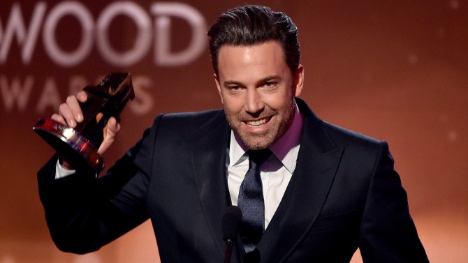 | Tài tử Ben Affleck thay mặt đoàn làm phim Gone Girl lên nhận giải Phim truyện xuất sắc nhất của Hollywood Film Awards 2014. |