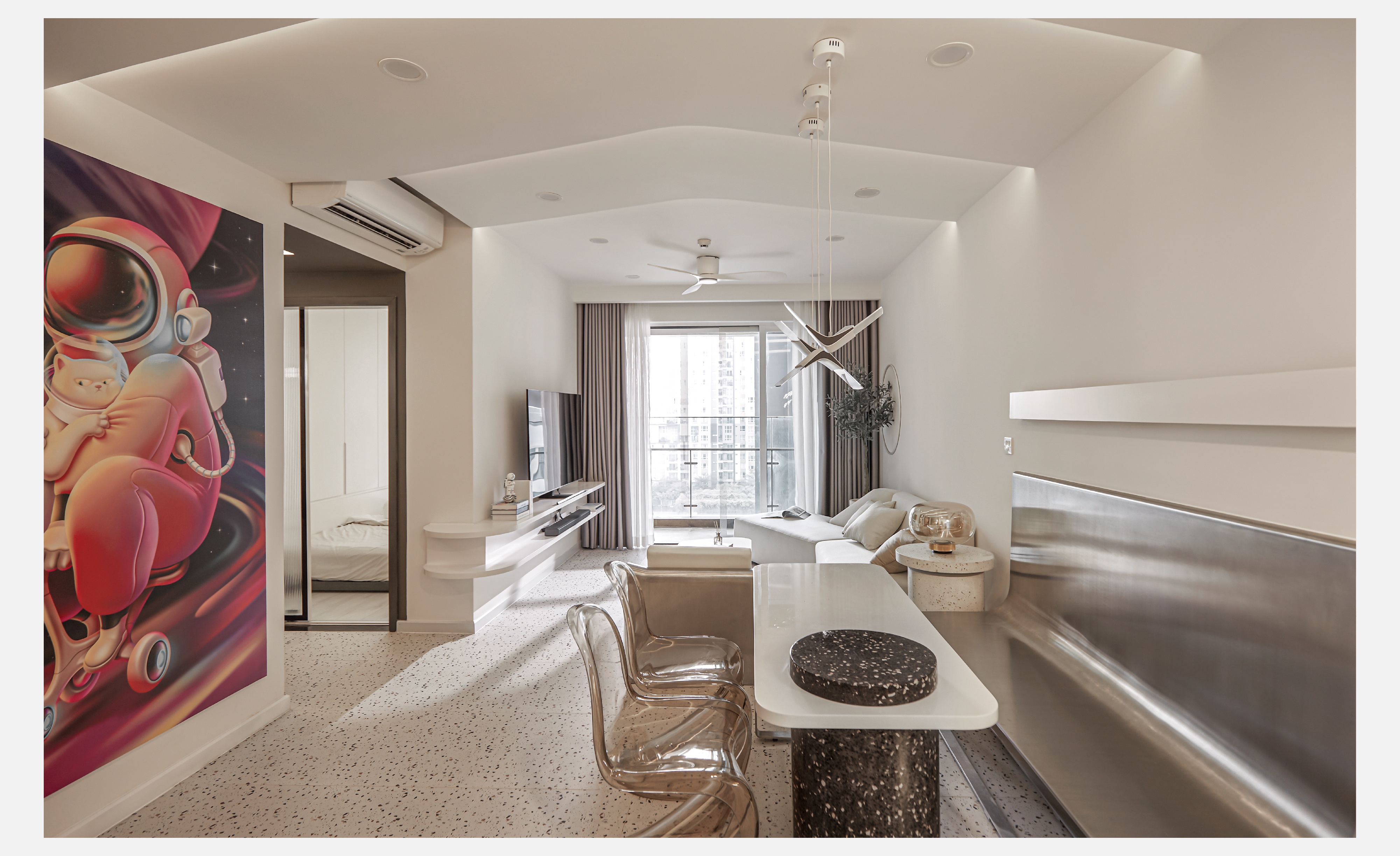 Căn hộ mặt trăng được thiết kế theo phong cách Futurism. Đây là một phong cách còn khá mới mẻ trong việc thiết kế, trang trí nội thất ở Việt Nam.