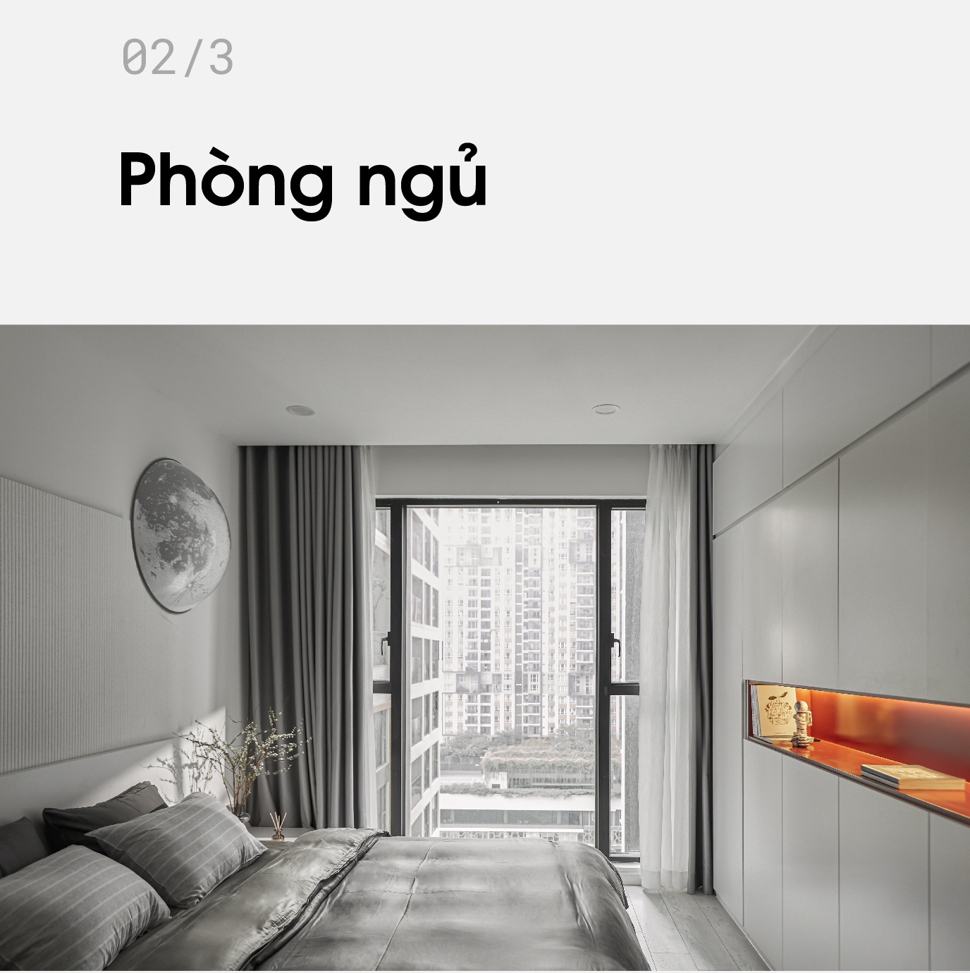 Hành trình đưa mặt trăng về căn hộ được Tín Dương kết lại ở không gian phòng ngủ.