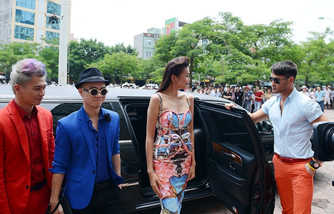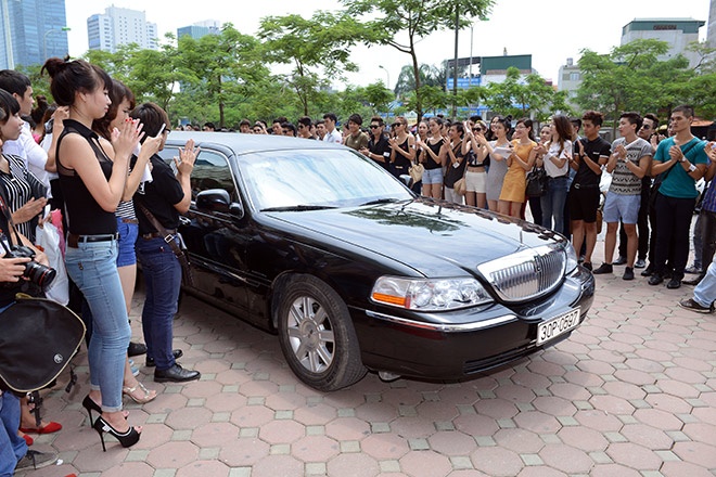 | Hơn 11h, các giám khảo mới có mặt tại buổi casting trên chiếc limousine màu đen sang trọng. |