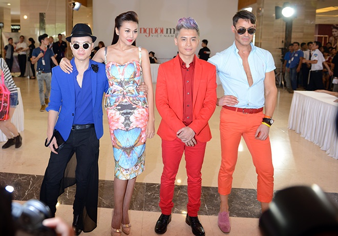 Xuất hiện khá muộn trong buổi casting ở Hà Nội, cả 4 giám khảo đều khéo léo khoe phong cách thời trang độc đáo và sự nhiệt huyết với chương trình. Nếu Thanh Hằng nữ tính, ngọt ngào cùng chiếc đầm hoa thì ba quý ông trong bộ tứ quyền lực lại rất nổi bật với những bộ đồ xanh - cam cá tính. Mới nằm viện 2 ngày vì kiệt sức nhưng Đỗ Mạnh Cường vẫn rất tươi tắn, linh hoạt khi được đề nghị tạo dáng trên thảm đỏ.