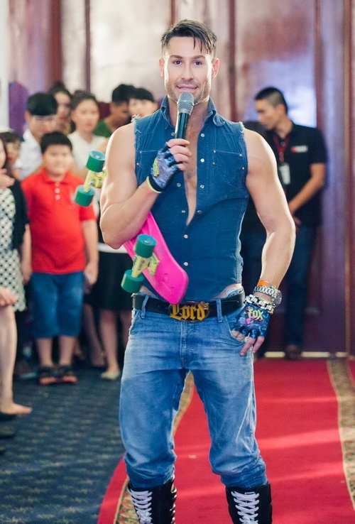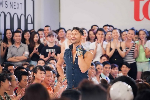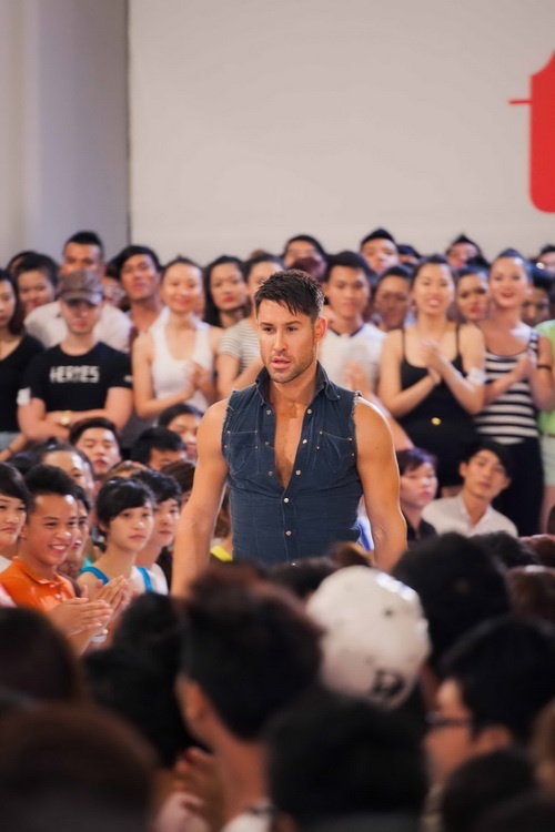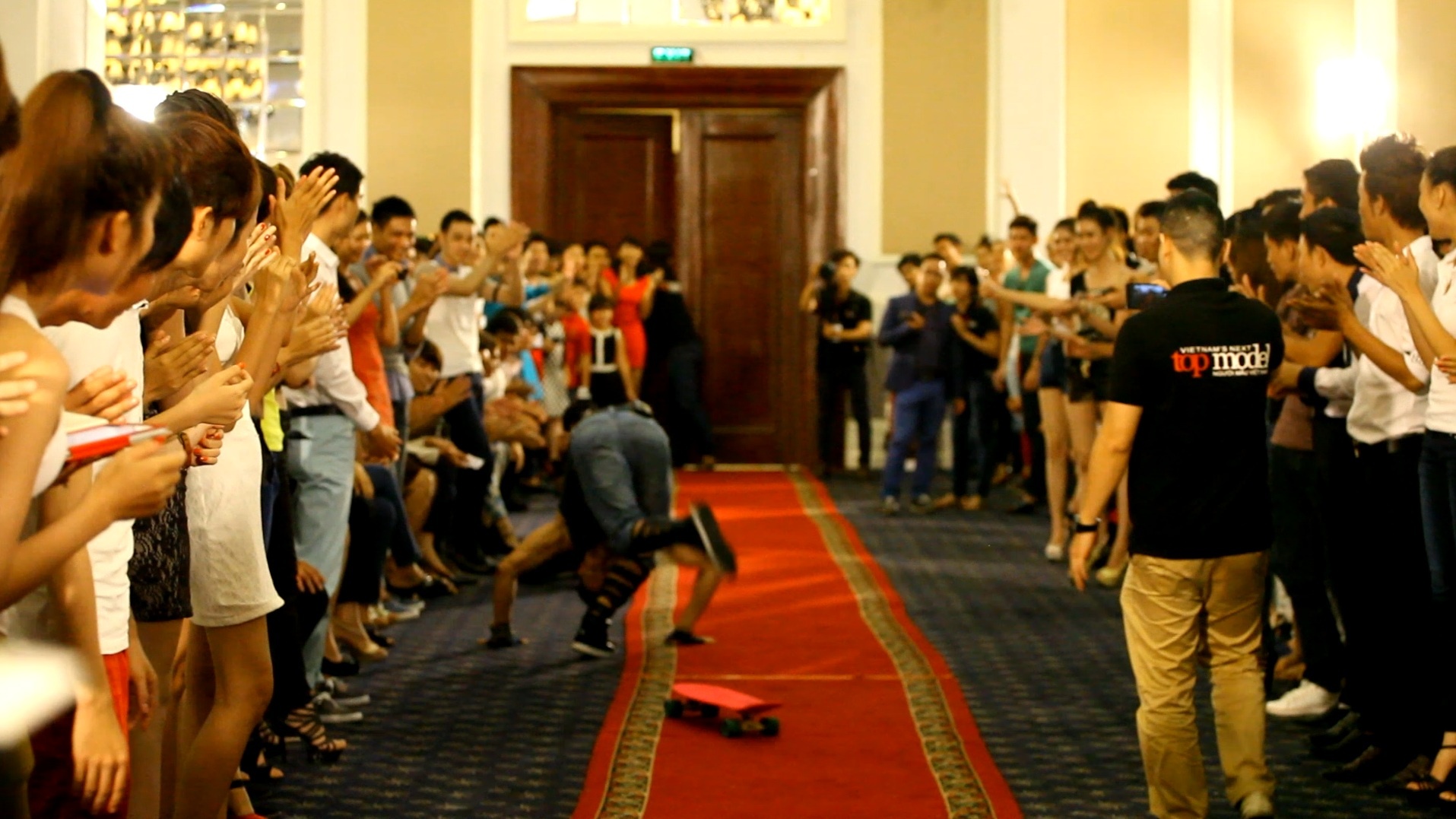 Sau màn giới thiệu trịnh trọng từ MC Tùng Leo, nam giám khảo có màn xuất hiện độc đáo, anh trượt trên chiếc ván lướt màu hồng yêu thích của mình, dừng lại giữa sân khấu. Anh chàng bắt đầu trình diễn những bước đi chuyên nghiệp. Chỉ trong khoảng thời gian ngắn, anh thể hiện nhiều tư thế đi đa dạng, mô tả sự uyển chuyển của người mẫu nữ, vẻ lịch lãm, nam tính, lạnh lùng của người mẫu nam, cách tạo sức hút với đôi mắt quyến rũ và đậm chất mẫu. Khán phòng trở nên náo nhiệt với tiếng reo hò thán phục từ cả ngàn thí sinh.