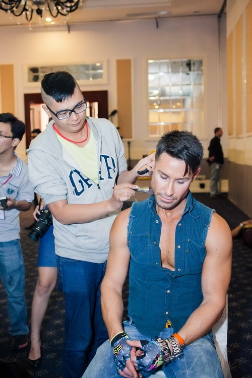 | Trước khi xuất hiện, anh được chăm chút kỹ phần make-up. |