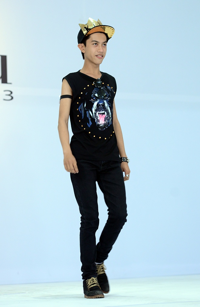 | Duy Trung tự tin trên sàn catwalk dù vóc dáng rất nhỏ con. Trước đó, cậu khẳng định mình cao 1m75 nhưng theo quan sát của phóng viên, chiều cao của "bé hạt tiêu" này chỉ xấp xỉ 1m65 mà thôi. |