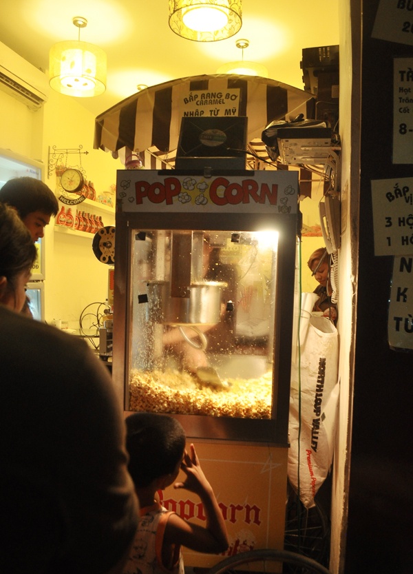 Giá chỉ xấp xỉ một cốc trà đá vỉa hè, khách lại có cơ hội thưởng thức loại bỏng ngô mới ra lò, được quảng cáo là vị caramen nhập khẩu từ Mỹ, nên thanh niên và trẻ con cứ lũ lượt kéo đến. Tuy nhiên, để có trong tay hộp bỏng ngô thơm ngon bổ rẻ cũng vất vả, bon chen.