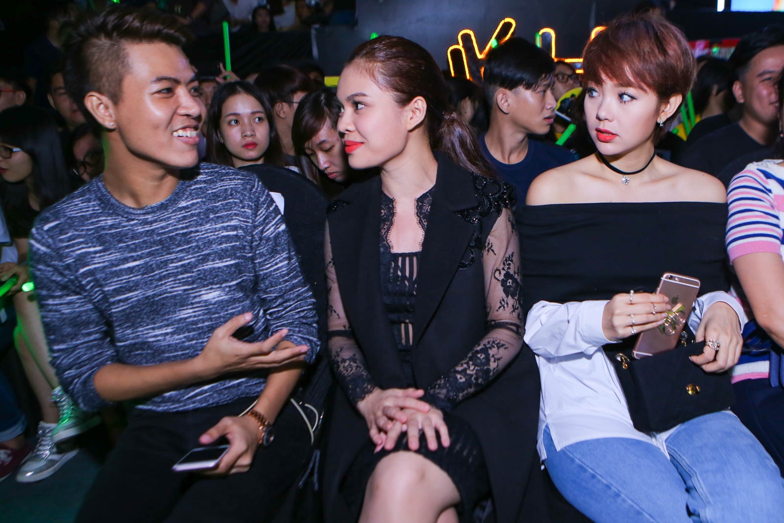 | Giang Hồng Ngọc (ngồi giữa) bày tỏ sự bức xúc trước cách ứng xử của nam MC. |