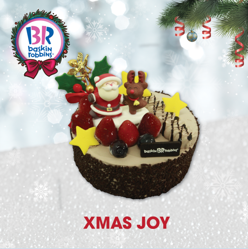 “Xmas Joy” mang đến cảm giác vui nhộn với hình ảnh ông già Noel cùng chú tuần lộc nhảy múa trong không khí se lạnh nhưng lại rất ấm áp vì những tiếng cười giòn tan hòa cùng giai điệu tươi vui của mùa đông. Bạn sẽ thích thú khi thưởng thức chiếc bánh với những quả dâu tươi ngọt ngào hòa quyện với hương thơm cà phê và sô cô la lan tỏa nồng nàn từ mùi kem Jamoca Almond Fudge nổi tiếng nước Mỹ.